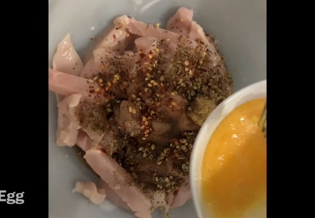 02Add salt, red chili powder, cumin seeds, black pepper, dry coriander, ginger-garlic paste, soy sauce and egg. Mix well.