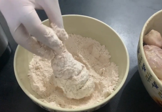 05Properly coat the marinated chicken with the coating mixture on both sides.