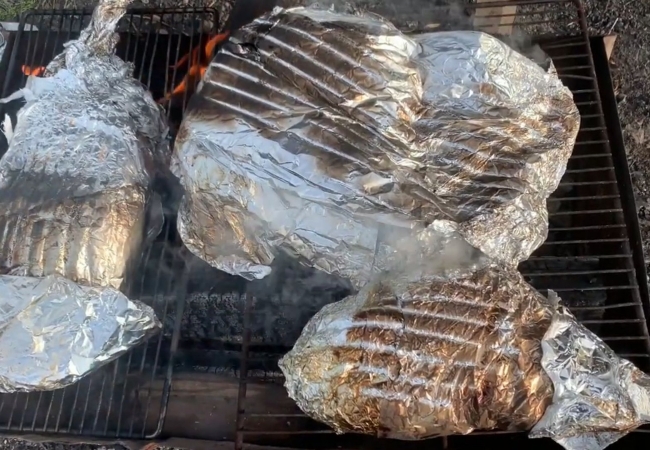 04 You can roast the meat on a charcoal grill. Roast both sides for 1 hour each.