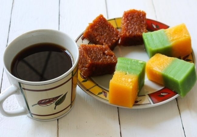 I got addicted to Malays sweet Kue Lapis (served in various flavours & colours)